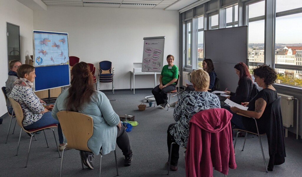 Am 25. und 26. September waren sieben Schatzsuche-Referentinnen im Hans-Geisler-Saal der SLfG in Dresden zu Gast, um ihr Schatzsuche-Repertoire für die Umsetzung des Eltern-Programms in der eigenen Kita zu erweitern.