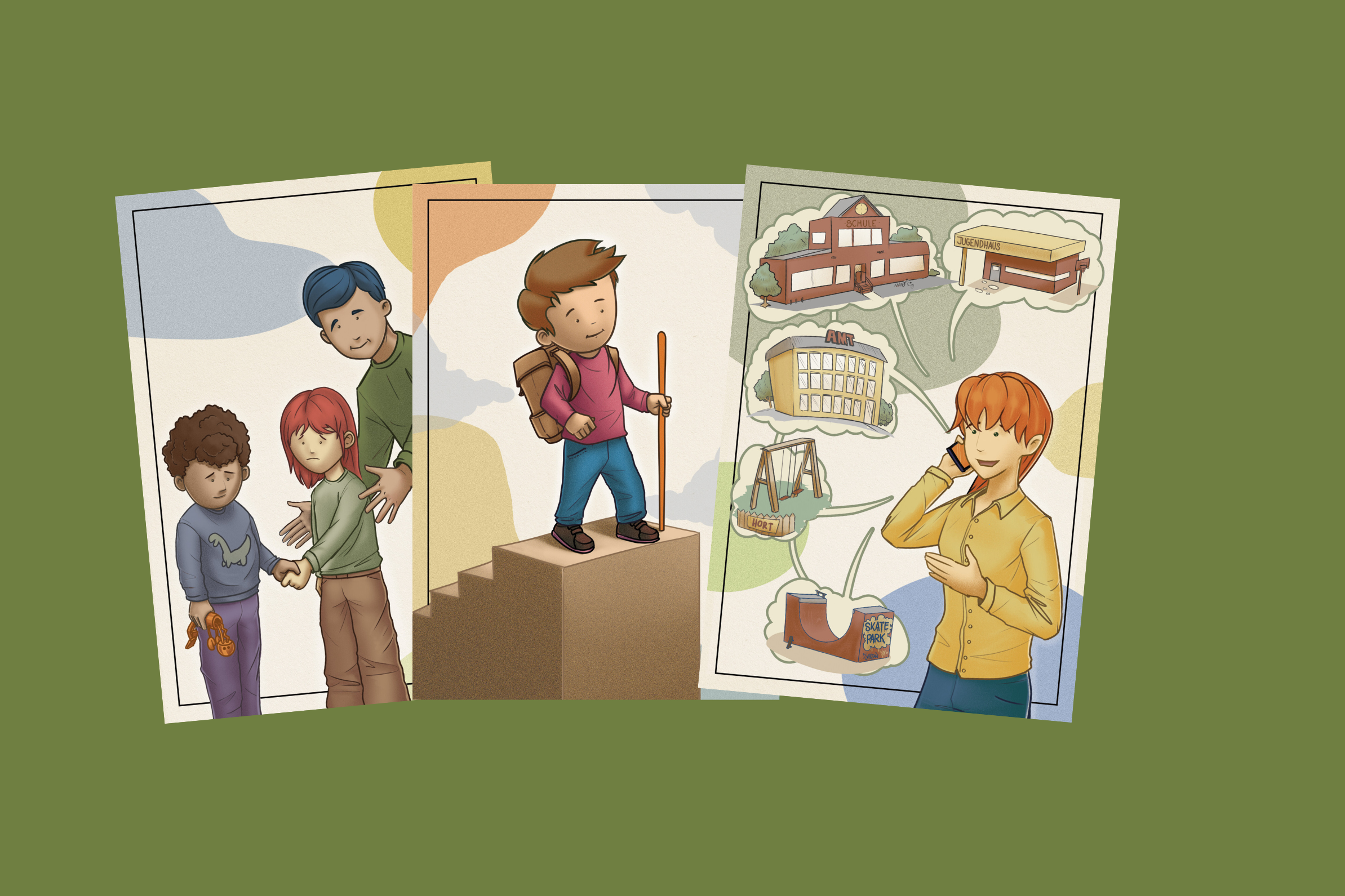 Seit Februar 2025 gibt es ein eigenes Karten-Set für das ESF Plus-Programm KINDER STÄRKEN 2.0. Neun Illustrationen veranschaulichen die vielfältige Umsetzung des Programms.
