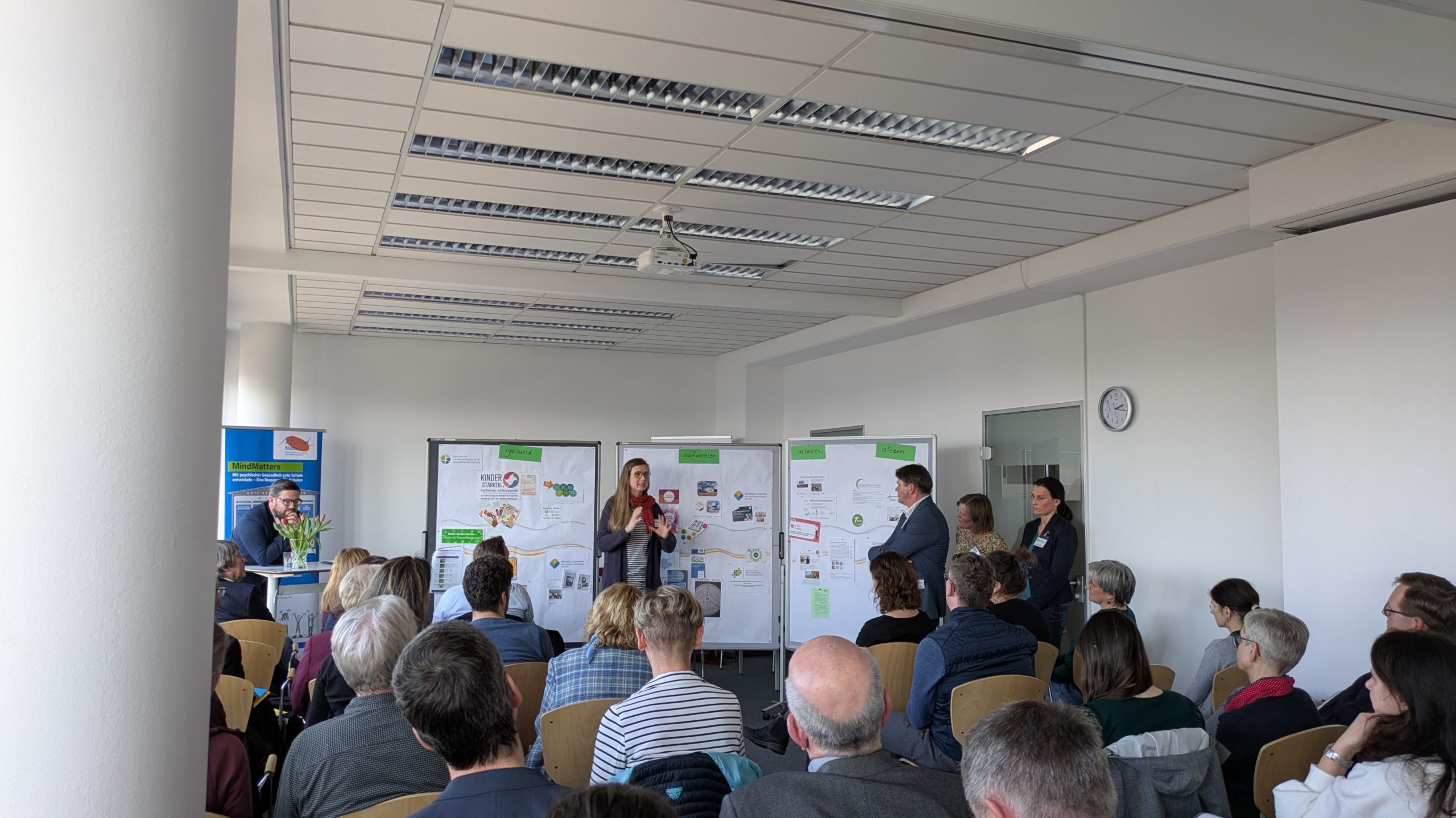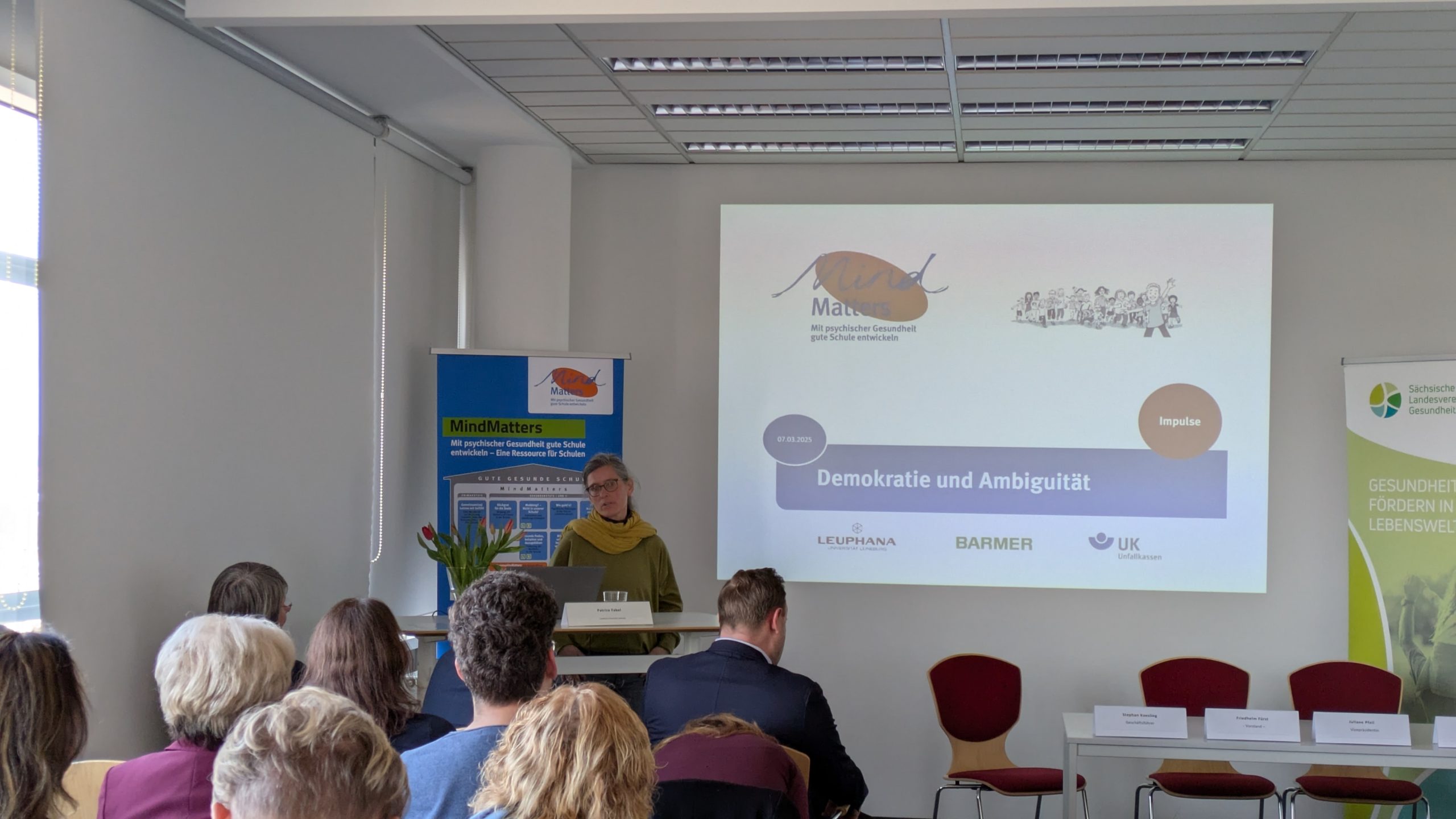 Zu Beginn gab Patrice Fabel, wissenschaftliche Mitarbeiterin im Projekt „MindMatters“, einen Impulsvortrag zum Thema „Demokratie und ihre Ambiguitäten – Wie können psychische Ressourcen für eine selbstwirksame Teilhabe gestärkt werden?“.