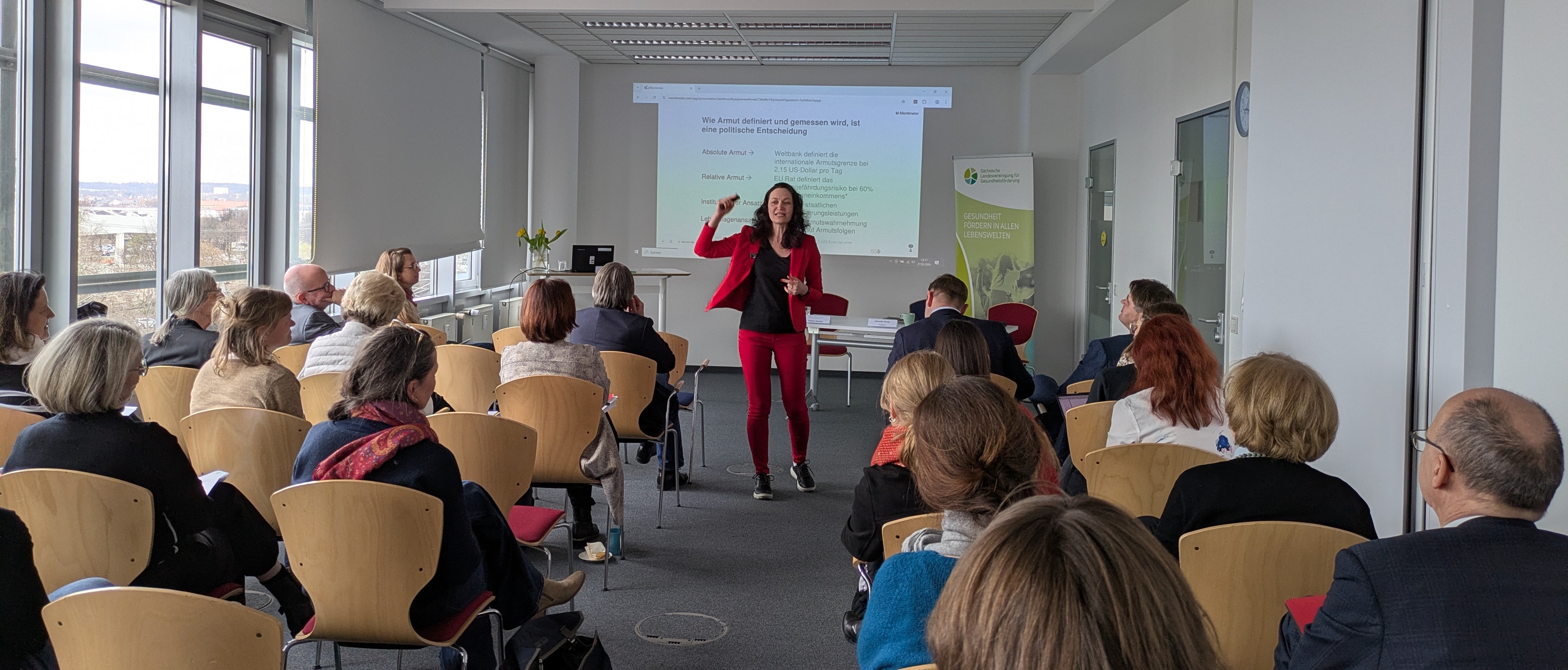 Zu Beginn verfolgten die Teilnehmenden mit Spannung den interessanten und dynamischen Impulsvortrag von Dr. Irina Volf zum Thema „Armutssensibles Handeln – Ein integrierter Blick auf die Beseitigung von Armutsursachen und Prävention von Armutsfolgen“. Als Expertin für armutssensibles Handeln bringt sie umfassende Erfahrungen aus der Praxisforschung mit. Ziel ihrer Arbeit ist es, ein vertieftes Verständnis zu den Entstehungsbedingungen von Armut sowie Mechanismen zur Bekämpfung von Armut und Armutsfolgen zu gewinnen.