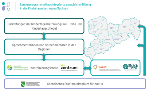 Das Landesprogramm alltagsintegrierte sprachliche Bildung in der Kindertagesbetreuung Sachsen richtet sich an pädagogische Fachkräfte und Kindertagespflegepersonen aus Kinderkrippe, Kindergarten, Kindertagespflege und Hort. Ziel des Programms ist es, die sprachliche Bildung sowie die Gesundheitsbildung, insbesondere die Mundgesundheit, in der Kindertagesbetreuung zu stärken und dabei besonders Fachkräfte der Kindertagesbetreuung thematisch zu begleiten und bedarfsgerecht fortzubilden.