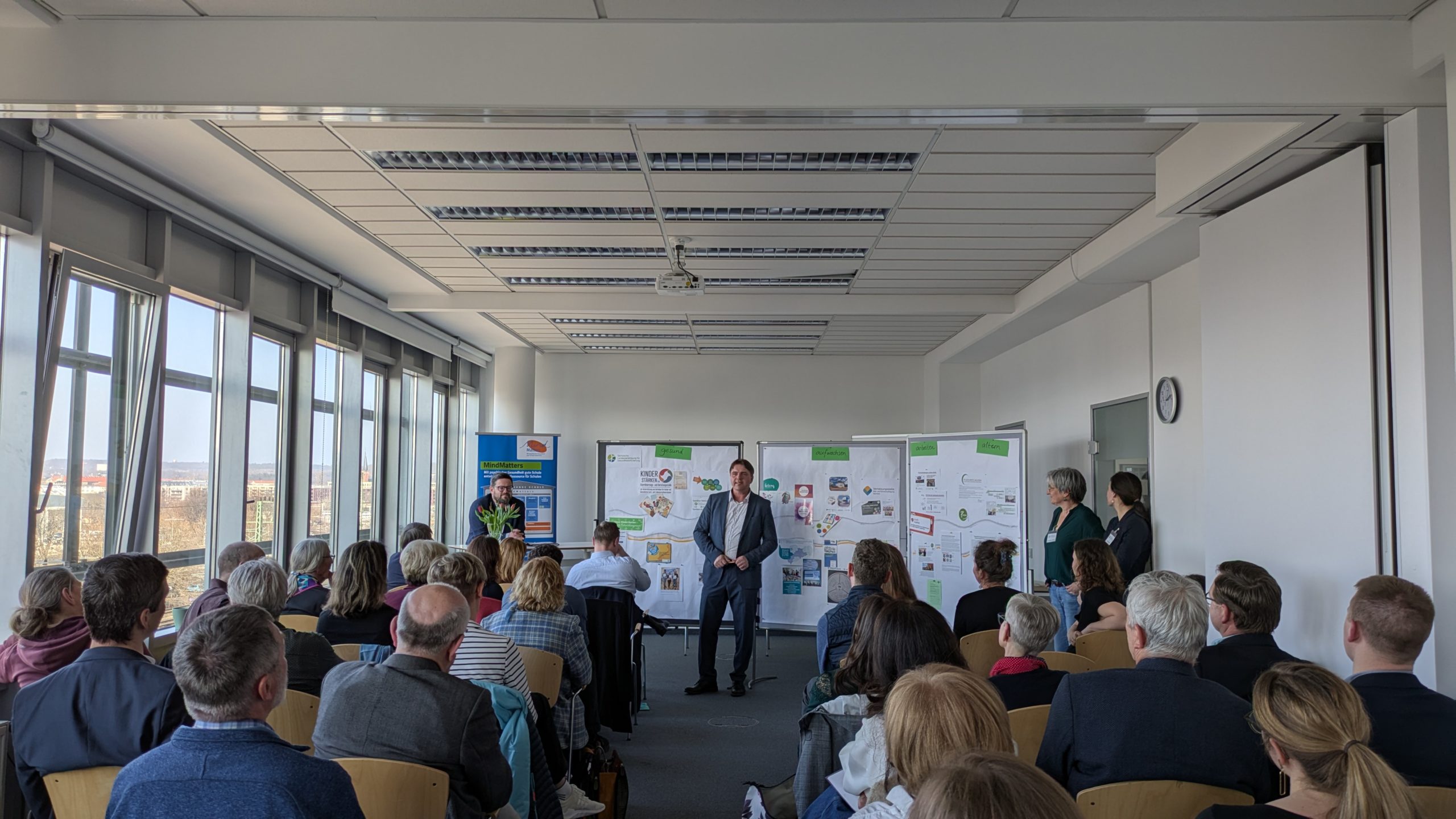 Die begleitende Ausstellung im Vorfoyer zum Hans-Geisler-Saal spiegelte die Vielfalt der Projekte in 2023 eindrucksvoll wider und lud die 54 Teilnehmenden zum intensiven Austausch ein.
