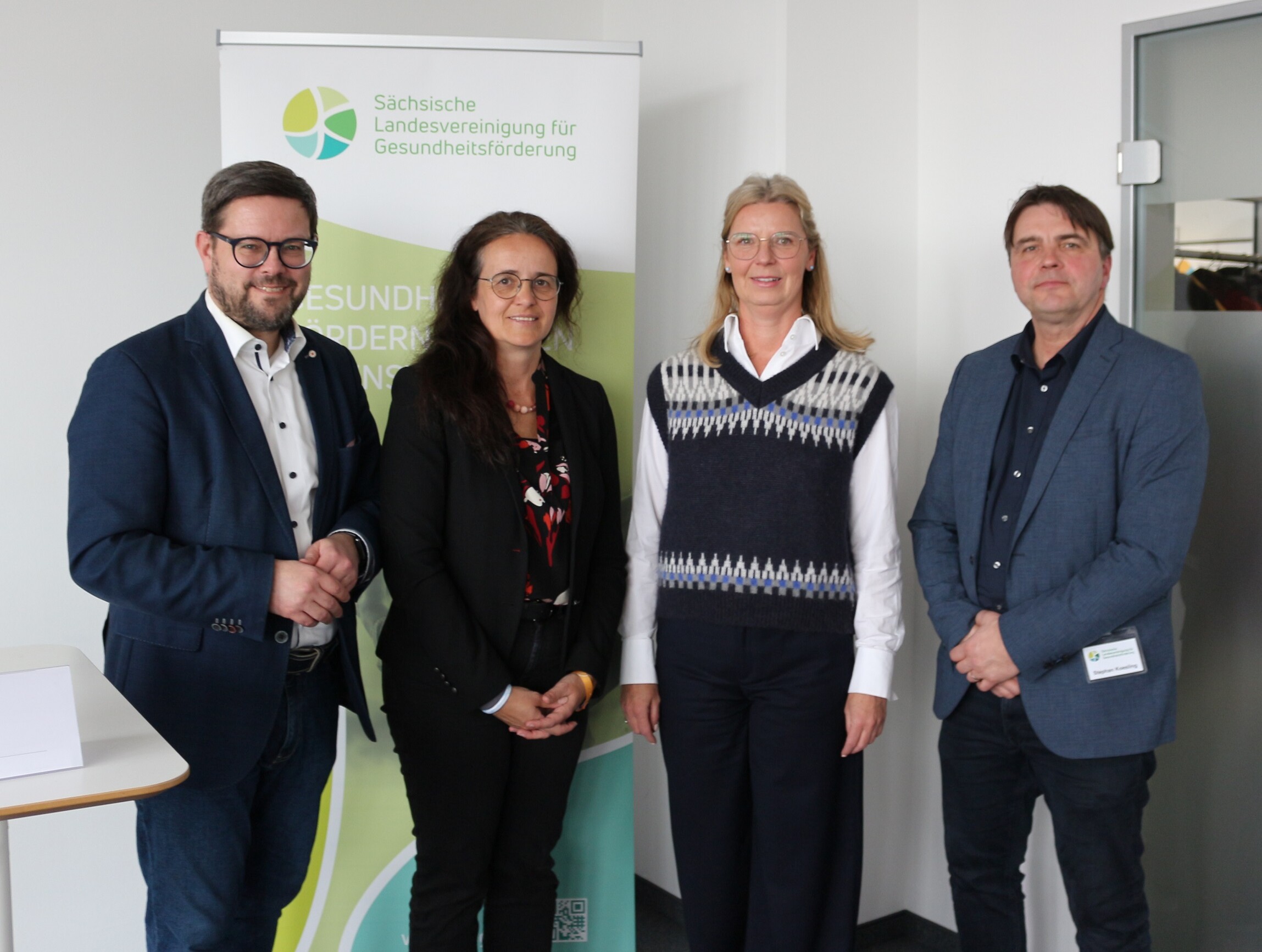 v. l. n. r.: Lars Rohwer, Staatssekretärin Dagmar Neukirch, Silke Heinke, Stephan Koesling © SLfG